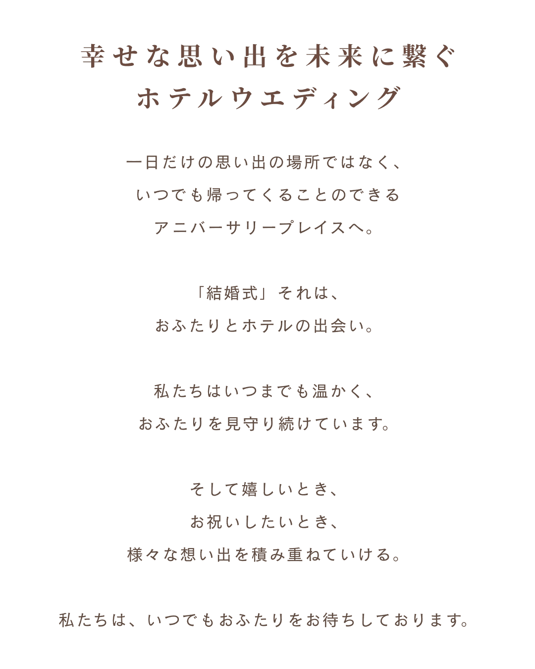 ホテルウエディングならではのおもてなし結婚式が特典付きのプランでお得に叶う!洗練されたサービスの結婚式と、結婚式後の二次会や宿泊のプレゼントがついて、ゲストの皆さまと思い出に残る特別な一日に…